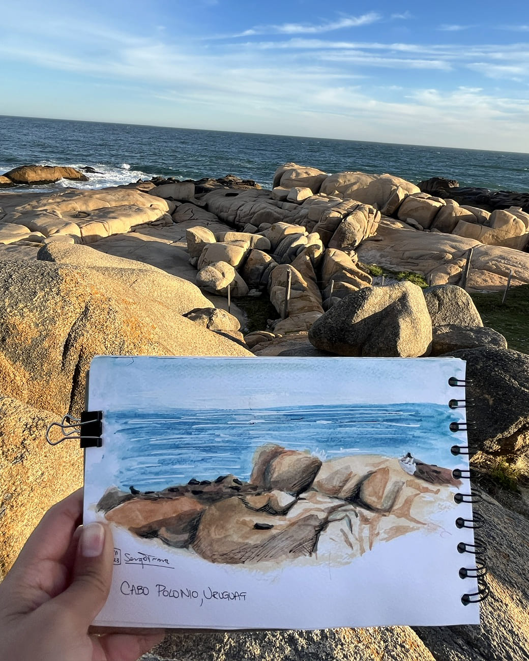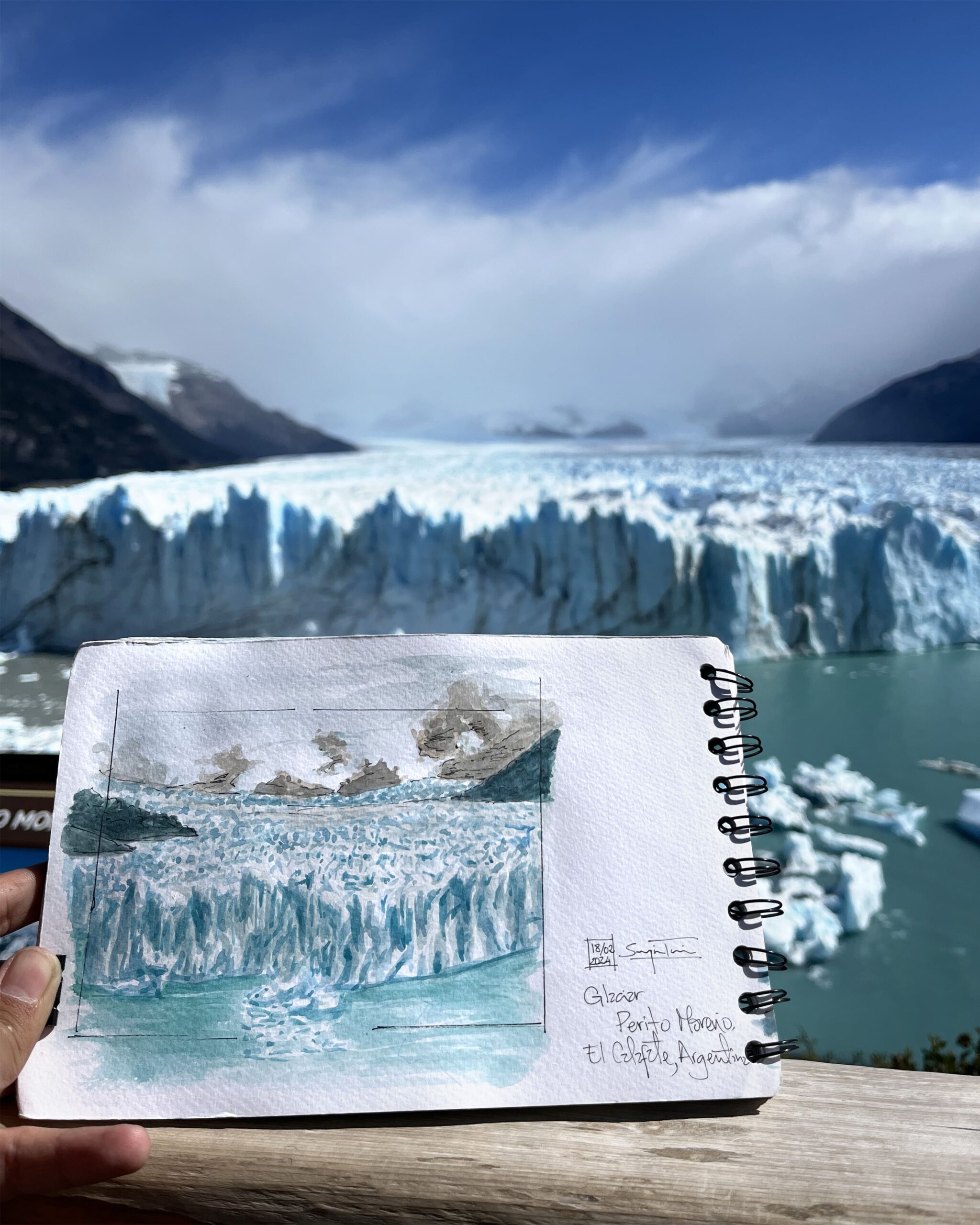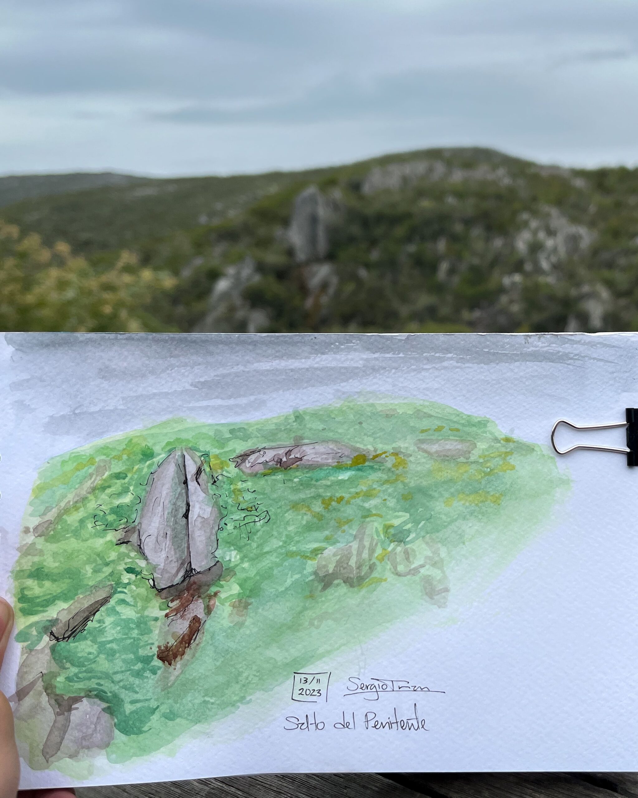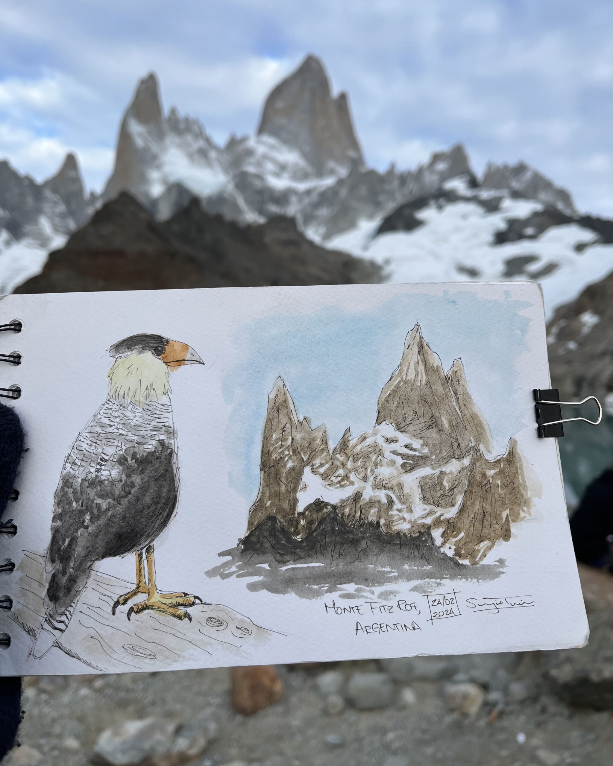I love traveling and filling my sketchbook with what I see along the way —landscapes, details I come across, or people going about their day. I usually work with watercolor and ink, but I enjoy exploring new techniques too.